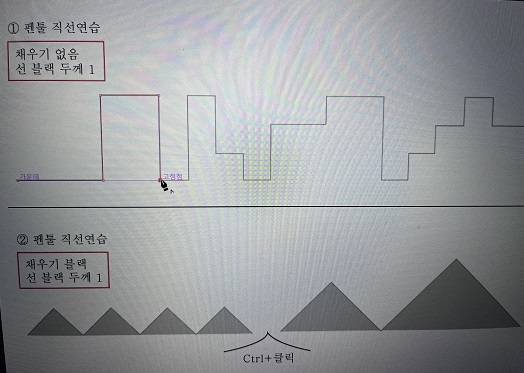 펜툴을 선택해서 직선그리는데 직선이라 그런가 쉬웠다.