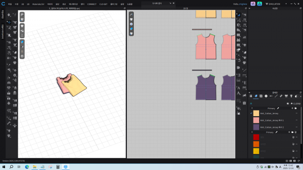 겹패턴 바깥쪽으로하면 2D패턴 창 위쪽으로 배치, 안쪽은 아랫쪽 배치 (우리 수업 시 유지)