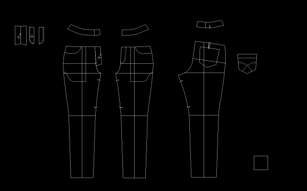 * 캐드 상에서는 뒤판을 중심끼리 붙여 뒤주머니 위치가 적절한지 볼 수 있다. mv로 이동이 가능하다.