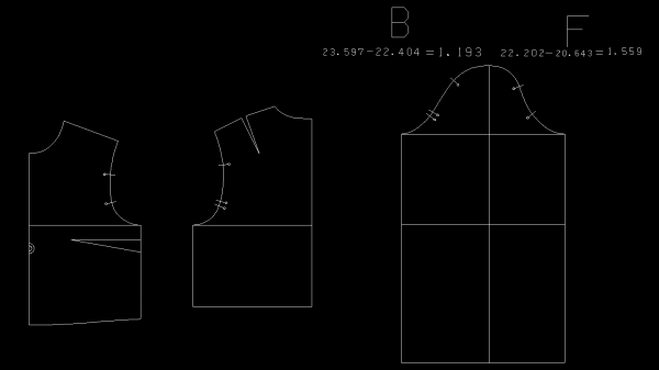 어깨는 바이어스 결이라 봉제시 조금 늘어남 그래서 앞판과 뒤판의 어깨점 사이는 살짝 들어가 있는 것이 좋습니다 물론 원단의 물성에 따라서 달라집니다