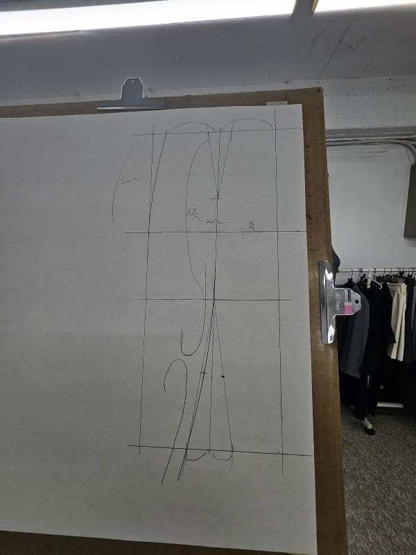 뒤판부터 1- 우선 허리를 그리고 세로 중심선을 그려요