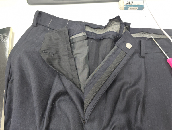 남자 정장 바지인데 땀받이, 구두까임 등 신기한 디테일이 많았다.