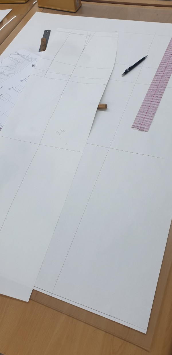 스커트와 달리 제도를 위해 필요한 체촌 부위와 그 수치가 패턴에 어떤 식으로 적용되는지 배웠습니다.