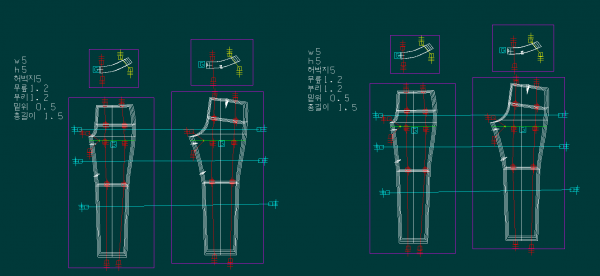 - 앞밑위둘레 편차는 샅곡선만 보면됨 - 허벅지선 튀어나온건 GB로 수정