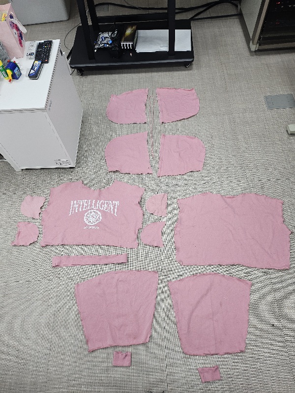 위의 옷을 다 해체해보았어요. 칼로 뜯고 실뜯개로 뜯고 모든 박음질을 뜯느라 꽤 오랜시간이 걸렸어요
