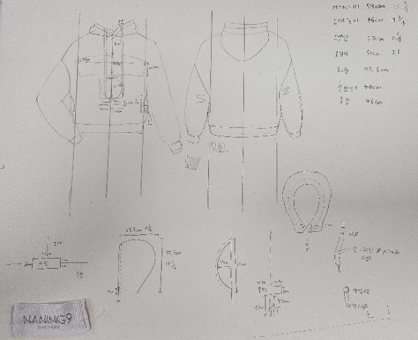 패턴 스와치와 부자재 붙이면 완성이에요.