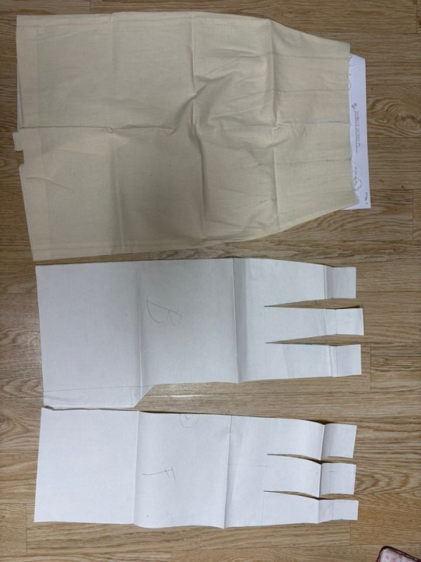 기본H라인에서 다트 하나만 더 추가: 앞판 7/8인치씩, 와끼 깎음은 1인치, 뒷판 1/2인치씩, 와끼 깎음은 1인치