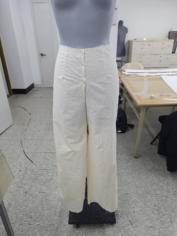 바지만 클로즈업해보니 다트도 잘 박았고 이음새 밑위도 잘 연결되었습니다! 앞으로는 더욱 복기하며 실력을 다져봐야겠습니다!