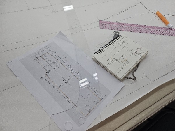 오늘은 저번 시간에 이어서 바지 패턴을 그리기 시작했어요. 기본 앞판을 그리고, 뒤판은 앞판을 변형하여 그리는 것이 바지패턴의 기본입니다.