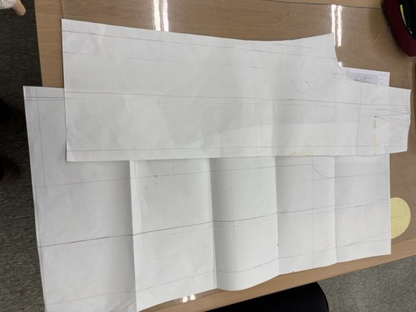 와끼에서 1/2인치 깎아준 점과 허리선에서 올려 표시한 점을 이어 뒷면의 허리선을 만들어준다.