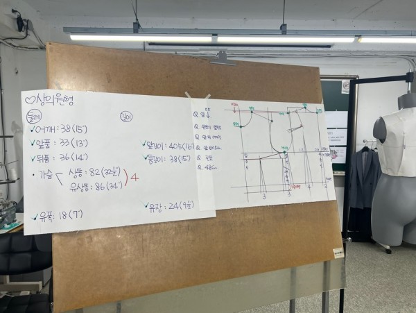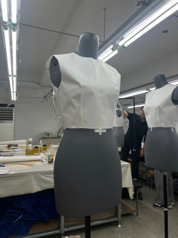 다트 없는 상의패턴을 그려서 마네킹에 입혀봤다.
