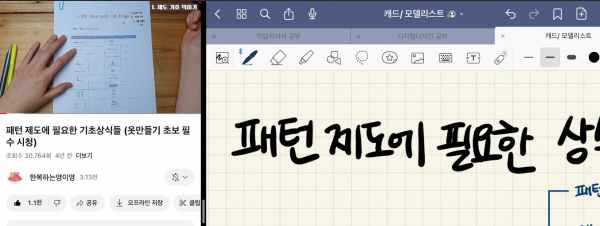 - 모델리스트 수업은 캐드 수업과 함께 같이 연결해서 공부하는데 그 시너지 효과가 좋은 것 같습니다. 모델리스트 수업 강사님께서 저희를 강하게 키우시려는 느낌이 많이 들어서 개인적으로 공부해야할께 너무 많습니다. 그래서 패턴 분석부터 이해까지 하고나면 그거를 캐드로 또 그려보면서 암기하려고 하고 있습니다. 이렇게 하니 많이 도움이 되는 것 같습니다. 지금 수업 진도를 바짓가랑이 잡듯이 따라가고 있는데 마지막에는 멋진 엔딩을 그리고자 하는 저의 큰 그림이....