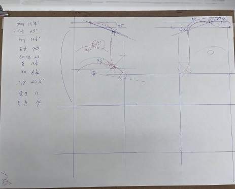 소매산이 짧아지고, 반대로 어깨가 좁을수록 소매산은 길어진다고 디테일하게 설명해주셨다.