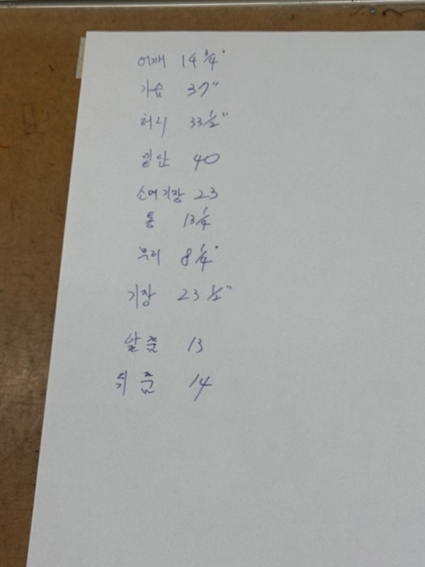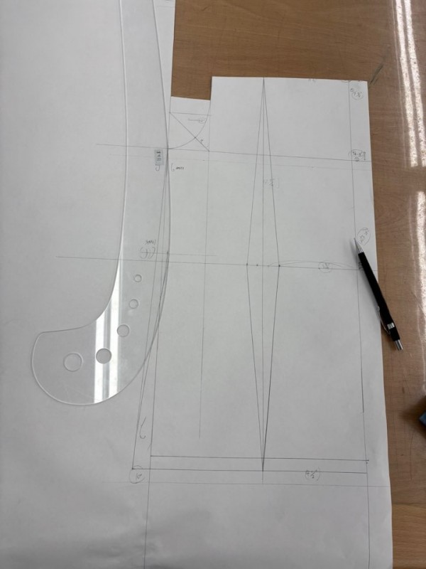 이미 있던 셔츠의 치수를 재어 패턴 그리기를 하였다.