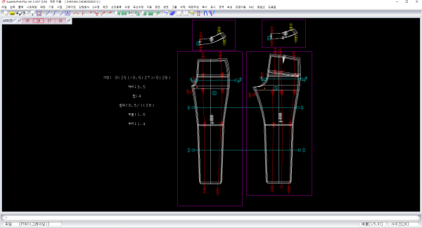 하지만 바지 앞판, 뒤판, 앞 오비, 뒤 오비로 그레이딩 할 패턴이 줄었는데도