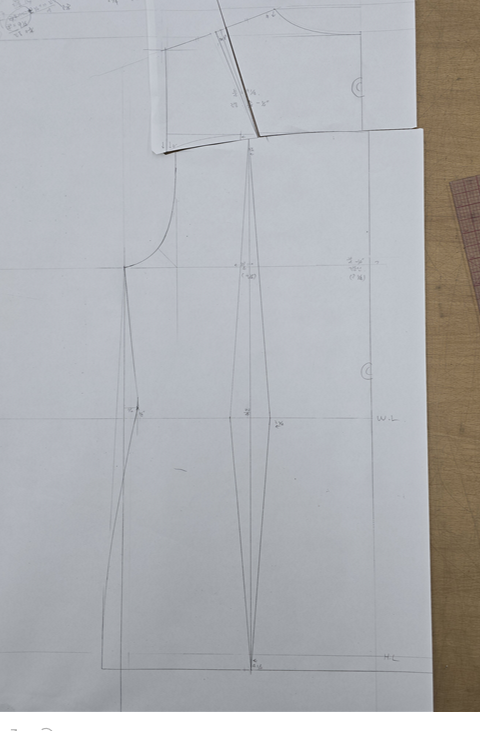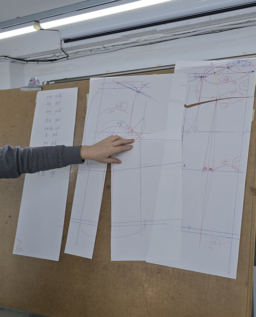 오늘은 옷 사이즈 측정하는 법과 실제 옷을 가지고 패턴을 그리는 법을 배웠다.