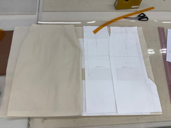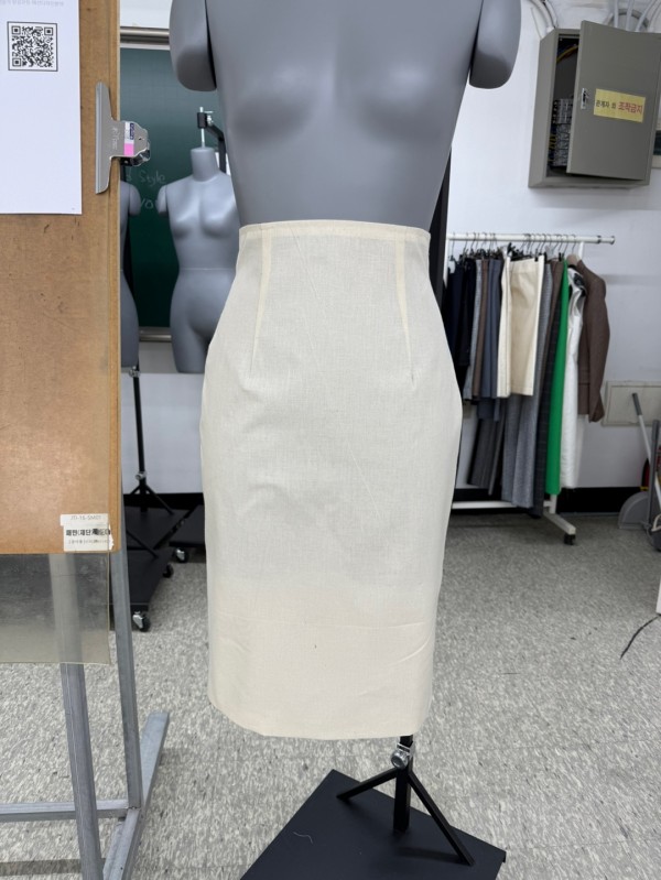 재봉 과정에서는 미싱에 아직 익숙하지 않아 여러 시행착오가 있었지만, 오히려 그 덕분에 패턴과 봉제가 얼마나 긴밀히 연결되어 있는지 체감할 수 있었습니다. 완성된 스커트를 마네킹에 입혀보며 실루엣을 점검하고, 수업 중 강사님께 1:1 피드백을 받으면서 수정해 나가는 과정 자체가 많은 배움이 되었습니다.