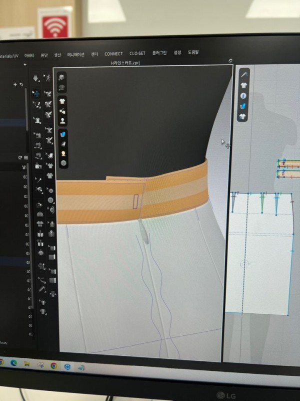 -> 클로상에서는 봉제선 속성을 수정 (밑단만 턴드on 또는 접힘각도 360)