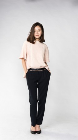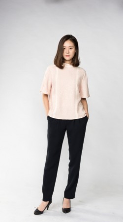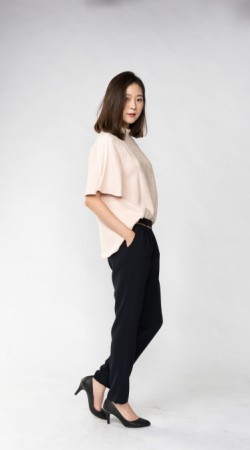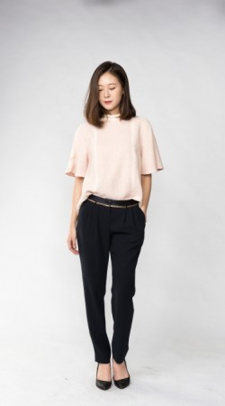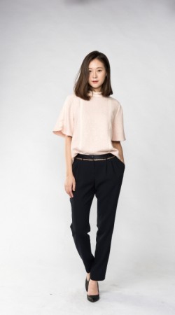 소매 부분과 몸통 라닌을 넓은 A라인으로 마들어 여성스러운 느낌을 주었습니다.
