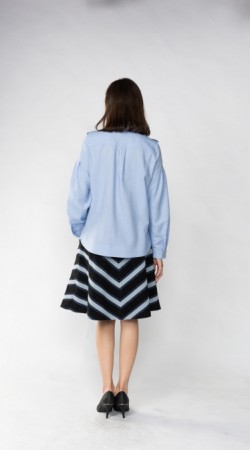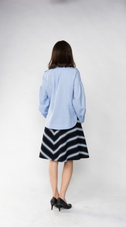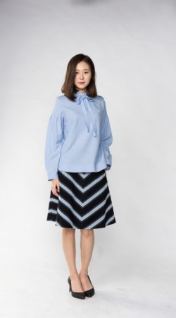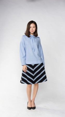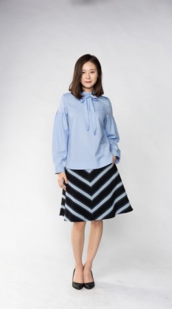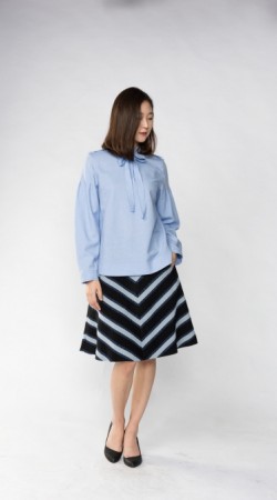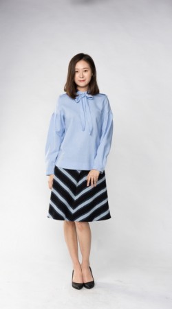 스탠드 칼라와 리본 칼라가 결합된 스타일과, 소매 부분에 주름을 주어 부풀린 스타일의 블라우스 입니다.