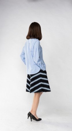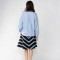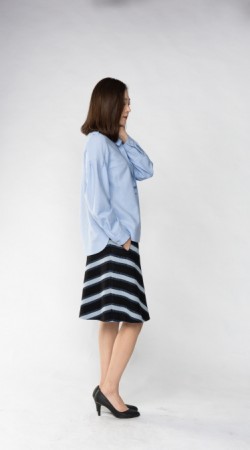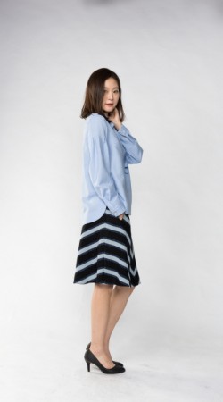 밑단 부분을 깔끔하게 처리하여, 밖으로 빼서 입으셔도 좋습니다. 넉넉한 박스라인의 실루엣이라서 신축성이 없어도