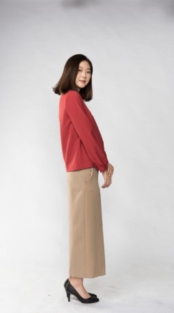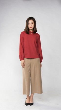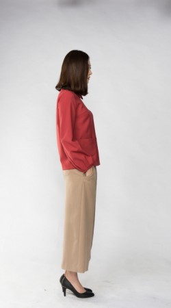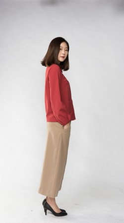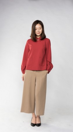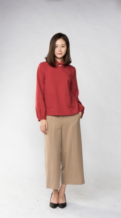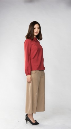 비교적 얇고 부드러운 느낌의 소재에 통이 넓고, 부분 공단 배색을 준 스타일입니다.